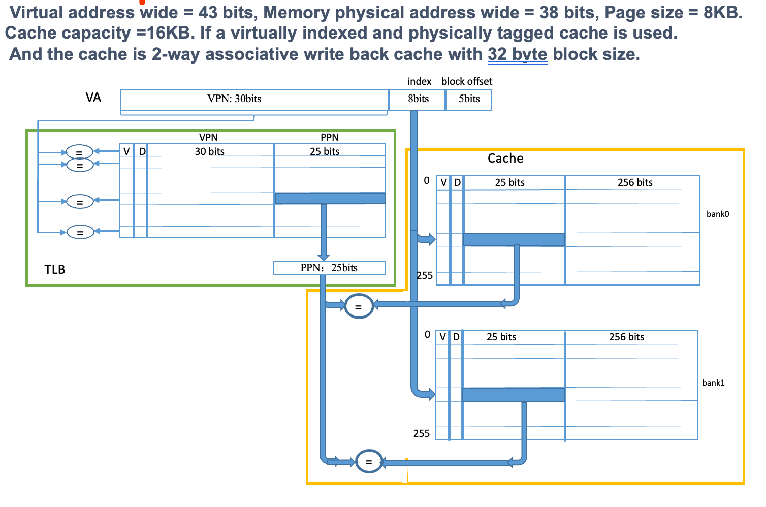 - bits: 地址size - index size - offset size